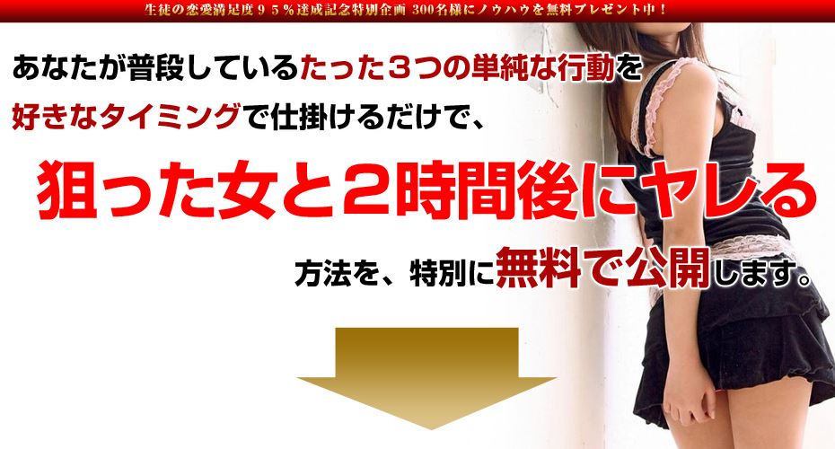 当サイト限定「狙った女と2時間後にヤレる」方法を無料でプレゼント