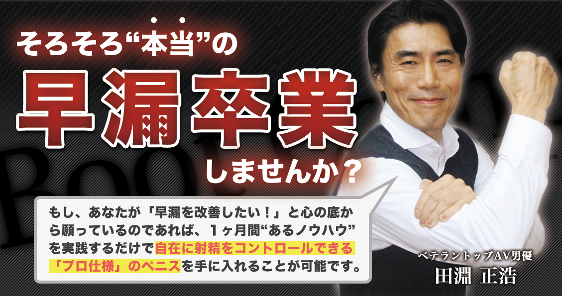 「田淵正浩の早漏改善ブートキャンプ」は、ベテラントップAV男優“田淵正浩”が教える早漏改善プログラムです。
