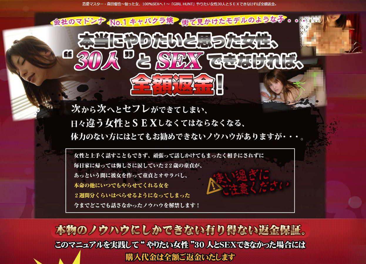 極秘プロジェクト!ガールハント解禁!!森田優也が伝授する〜狙った女、100%セックスへ〜【全額返金保証&ありえない特典サポート付き】 ※美女を口説く実録音声4本付き