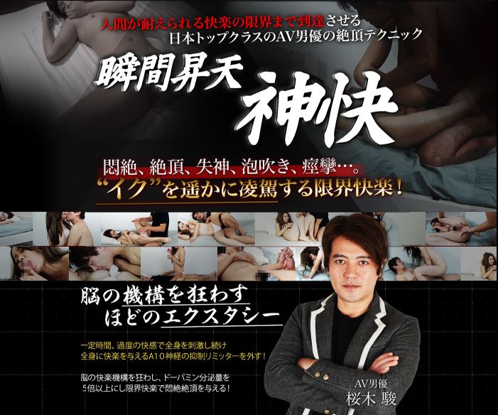 あなたとのセックスをした女性を、人生で初めての限界快楽へと導くことができる瞬間昇天【神快】は、AV男優・桜木駿の集大成のセックステクニックだということです。