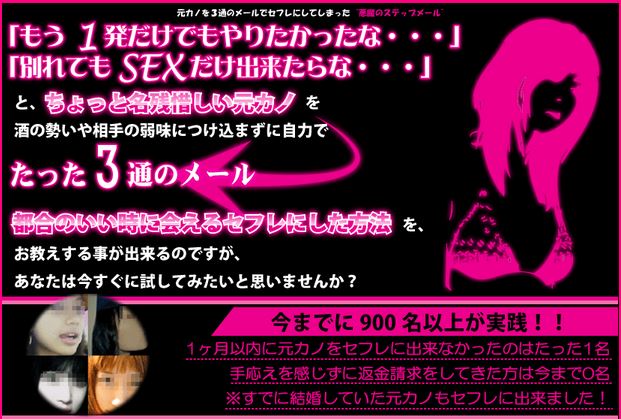 そのちょっとした手間を惜しまずに行動することで、悪魔のステップメールがあらゆる状況に対応し、最短で元カノをセフレにしてみせます!