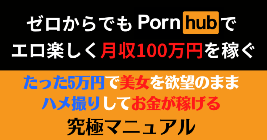 「ハメ撮りで月400万円稼ぐためのマニュアル」は、pornhubで月300万円稼ぐための教科書です。