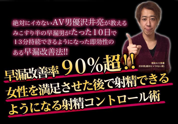 絶対にイカないAV男優 沢井 亮が教えるみこすり半の早漏男がたった10日で13分持続できるようになった即効性のある早漏改善法