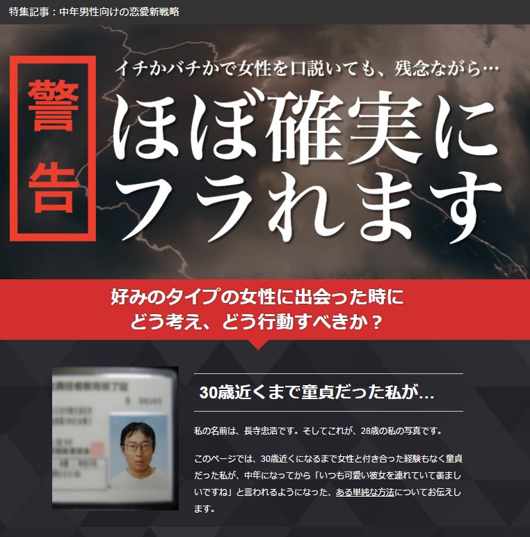 このような恋愛に関する悩みは尽きないものですが、今回ご紹介する「中年男が美女を虜にする(容赦なき戦略4ステップ)」は、恋愛を不得意とする中年男性が抱える深刻な悩みを解決するための方法を公開していますので、もしかすると、とても役に立つ重要なお話になるかもしれません。
